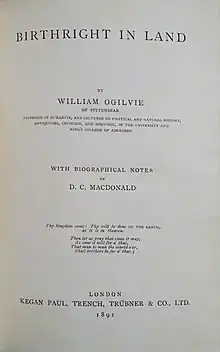 - ↑ Ogilvie, William (2010) [1970 (1891)]. DC MacDonald (ed.). Birthright in Land (online resource). Cornell University Library.