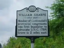 - ↑ "The American Revolution in North Carolina, Colonel William Sharpe". Retrieved March 13, 2019.