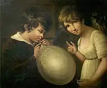 The Walker Art Gallery has a number of William Tate's portraits of notable men and women of the day including Daniel Daulby, and the sister of William Roscoe. There are also paintings of his nephew Thomas Moss Tate[4] and his niece Elizabeth Williamson, wife of Joseph Williamson.[5] There are twelve paintings in national collections in the UK including a portrait of Joseph Wright and Girl and Boy with a Bladder at Derby Museum and Art Gallery[4] which also hosts the country's main collection of Joseph Wright paintings.