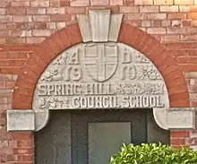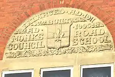 - Monk's Road Primary School, Lincoln. 1903/4 and later extended. A similar datestone to the Spring Hill School is above the gable window on this school.[46]
