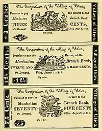 - ↑ Hunnting became the second president of the Bank of Utica in 1813, one after the bank was founded, and was annually re-elected up until the year he died in 1846.[12]