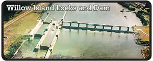 Willow Island Lock and Dam is the 7th Lock and dam on the Ohio River, located 162 miles downstream of Pittsburgh. There are two locks, one for commercial barge traffic that's 1,200 feet long by 110 feet wide, and the auxiliary lock is 600 feet long by 110 feet wide.[1]