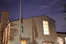 In 2003, Madikizela-Mandela offered to act as a human shield prior to the 2003 invasion of Iraq.[98] Also in 2003, she helped defuse a hostage situation at Wits University, where a student who was in arrears with fees took a staff member hostage at knifepoint.[99][100][101]