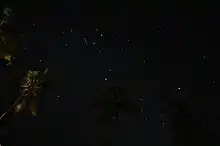 The Winter Hexagon or Winter Circle/Oval is an asterism appearing to be in the form of a hexagon with vertices at Rigel, Aldebaran, Capella, Pollux, Procyon, and Sirius. It is mostly upon the Northern Hemisphere's celestial sphere. On most locations on Earth (except the South Island of New Zealand and the south of Chile and Argentina and further south), this asterism is visible in the evening sky at the equator from approximately December to June, and in the morning sky from July to the end of November, while in the evenings on the northern hemisphere it is less months visible between December and June, and on the southern hemisphere less months between July and November. In the tropics and southern hemisphere, this (then called "summer hexagon") can be extended with the bright star Canopus in the south.