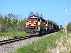 ![]() A trio of Wisconsin Central EMD SD45s on the Michigan's Upper Peninsula | |