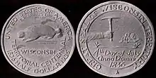 The Wisconsin Territorial Centennial half dollar is a commemorative half dollar designed by David Parsons and Benjamin Hawkins and minted by the United States Bureau of the Mint in 1936. The obverse depicts a pick axe and lead ore, referring to the lead mining in early Wisconsin, while the reverse depicts a badger and the territorial seal.