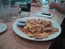Rascal House had the quintessential elements of a Jewish delicatessen, namely a large selection of deli soups and sandwiches (typically listed on an oversized laminated menu), a bowl of cold pickles and a basket of assorted rolls for every table. While Rascal House's featured dish was their classic stacked corned beef sandwich, they also served Jewish home cooking, such as matzah brei, a breakfast meal consisting of strips of matzoh cooked like scrambled eggs.