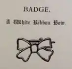 The official badge of the WCTU is a white ribbon: "a symbol of purity of purpose which binds together Christian women around the world."[4] The white ribbon was first used by the American WCTU since its founding and in 1877 was officially featured in a bow. The white ribbon bow is worn pinned over the heart.[2] During the union's early years in New Zealand, it would often be used together with the Gospel Temperance movement's blue ribbon.[5]