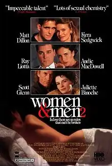 Women and Men 2 is the second installment of HBO's made-for-television short films based on works by American authors. Directed by Walter Bernstein, Mike Figgis, and Kristi Zea, the film stars Matt Dillon, Kyra Sedgwick, Ray Liotta, Andie MacDowell, Scott Glenn and Juliette Binoche.