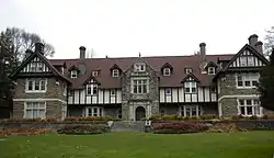 This historic mansion is a three-story, fifty-one-room, 47,000-square-foot building that was created in the Elizabethan Tudor Revival style. It was once part of a 238-acre estate, 112 acres of which later became Cabrini University.
