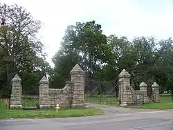 ![]() Historic Davis Street gate to Woodlawn Cemetery | |