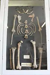 A 1000-year-old skeleton was discovered in the caves by Balch in 1912, and has also traditionally been linked to the legendary witch, although analysis indicated that they are the remains of a male aged between 25 and 35.[63] The remains have been part of the collection of the Wells and Mendip Museum, founded by Balch, since they were excavated, though in 2004 the owner of the caves said that he wanted them to be returned to Wookey Hole.[64]