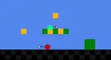At the start of World 1-1, the player controls Mario to immediately encounter a slowly approaching Goomba. According to 1UP.com, it is likely that this first enemy will kill a novice player, even though the enemy can easily be avoided by jumping over it. As very little progress is lost, the player learns from defeat and can try again.[1] Past this Goomba comes an arrangement of blocks, a few of which are colored in gold. Bumping one of them from below releases a coin. According to Miyamoto, seeing a coin come out will "make [the player] happy" and want to repeat the action. Doing so for the second gold-colored block makes a Mushroom come out as a surprise power-up. The player has learned from the Goomba that mushroom-shaped beings are bad, so perhaps the player tries to avoid the power-up Mushroom, but the corridor of blocks foils escape. Touching the Mushroom makes Mario grow in size and strength, another positive reinforcement.[2][4]
