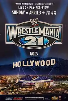 - ↑ "WrestleMania 21 Goes Hollywood with multi-media marketing campaign". World Wrestling Entertainment. March 16, 2005. Retrieved April 17, 2010.
