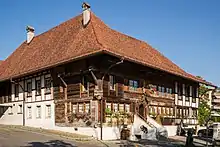 Restaurant Bären Münsingen is a traditional inn founded in 1371 and located in Münsingen, Bern canton, Switzerland. It is one of the oldest Swiss taverns and the recent wooden building is from 16th century. [1] At that time there was a post office and a place for "Postkutscher" (post coachmen) to change their horses. [2]
