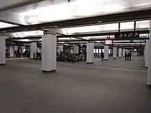 The station opened on 28 February 1932.[3] Wynyard was originally constructed with six platforms (the existing four platforms are still numbered from 3 to 6), with platforms 1-4 located on the upper level and platforms 5 and 6 on the lower level. The original intention was that Platforms 1 and 2, located adjacent to platforms 3 and 4, would eventually serve the eastern pair of railway tracks across the Harbour Bridge for a proposed railway line to the Northern Beaches. In the interim, with construction yet to begin on the Northern Beaches line due to lack of funds, they were used as a terminus for North Shore tram services on Sydney's tram network, operating from the bridge's opening in 1932 until 1958. A feature of these lines was Australia's only underground tram terminus.[1] On 22 January 1956, the lines from platforms 5 and 6 were extended to Circular Quay as part of the City Circle.[1]