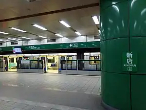 The Taipei Metro Xindian station (formerly transliterated as Hsintien Station until 2003) is the southern terminus of the Songshan–Xindian line located in Xindian District, New Taipei, Taiwan.