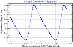 - ↑ "V* Y Sgr". SIMBAD. Centre de données astronomiques de Strasbourg. Retrieved 2012-09-17.
