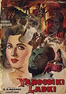 Yahudi Ki Ladki (The Jew's Daughter) is a 1957 Indian Hindi drama film directed by S.D. Narang, starring Madhubala and Pradeep Kumar as leads.[1][2] The film became a silver jubilee hit on its release in January 1957.[3]