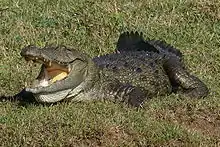 The reptile fauna recorded from the park is 47 and six of them are endemic. Sri Lankan krait, Boulenger's keelback, Sri Lankan flying snake, painted-lip lizard, Wiegmann's agama, and Bahir's fan-throated lizard are the endemic species.[2][14] The coastal line of the park is visited by the all five globally endangered sea turtles (leatherback turtle, olive ridley, loggerhead sea turtle, hawksbill turtle, and green turtle) that visit Sri Lanka.[2][3] The two breeding crocodile species of Sri Lanka, mugger crocodile and saltwater crocodile, inhabit the park. The Indian cobra and Russell's viper are among the other reptiles.[9]