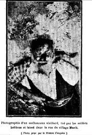 The Greek army captured Orhangazi on 16 October 1921 after resistance by Turkish militias. The next day there was a massacre in the nearby Turkish village of Çakırlı, men were locked in the local mosque where they were burned alive and shot.[23][24] Two days later on 18 October 1921 the nearby Turkish village of Üreğil (consisted of 90 families) was burned down.[24] On 16 April, the some 1,000 Turkish inhabitants of Orhangazi were sent to Gemlik by the Greek army while the town was partially burned down[1] the same day by the Greeks. The refugees reached Gemlik under very difficult circumstances, most were robbed and some killed on the way.[4] They were later evacuated by the Allied commission to Istanbul by boat. The next day on 17 April, there was a massacre[24] in the village of Gedelek which was burned[4] The Ottoman gendarmerie reported the attack on the village of Ali Al Sabah. On 10 May 1921 the village was looted by Christian paramilitaries and the women were raped.[1]