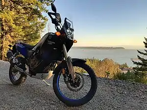 The Yamaha Ténéré 700 is a midsize adventure/dual-sport motorcycle manufactured by Yamaha since 2019.[1] It features a 689 cc (42.0 cu in) parallel-twin engine which powers the motorcycle through a six-speed gearbox and chain drive. Brakes are equipped with rider-switchable (on-off) ABS.[1]