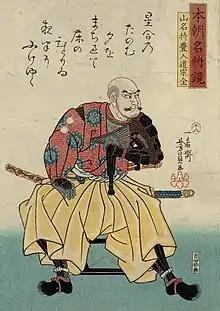 Yamana Sōzen (山名 宗全, July 6, 1404 – April 15, 1473) was originally Yamana Mochitoyo (山名 持豊) before becoming a monk. Due to his red complexion, he was sometimes known as Aka-nyūdō, "the Red Monk". He was one of the daimyōs who fought against Hosokawa Katsumoto during the Ōnin War in Heian-kyō.[1][2]