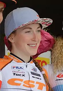 Yana Belomoyna (Ukrainian: Яна Беломоіна, also transliterated Iana Belomoina, born 2 November 1992) is a Ukrainian cross-country mountain biker.[1][2][3] She holds the 2017 UCI Cross-country Women's Elite #1 ranking.[4] At the 2012 Summer Olympics, she competed in the Women's cross-country at Hadleigh Farm, finishing in 13th place. She was the 2014 UCI Mountain Bike World Cup champion in the U23 category.[5]