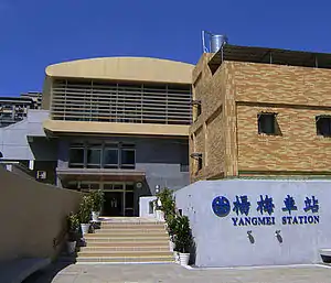 Yangmei (Chinese: 楊梅車站; pinyin: Yángméi Chēzhàn) is a railway station on the Taiwan Railways Administration West Coast line located in Yangmei District, Taoyuan City, Taiwan.