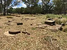 By 1908 the Mudgee Guardian reported that "Merrendee of to-day, with its paucity of population, its deserted appearance, abandoned shafts, grassless paddocks, its monotony and general activity, presents a striking contrast to the Merrendee of about fifty years ago".[9] By 1927 there were only 12 pupils enrolled at the Merrendee Provisional School "and as a rule an average daily attendance of 9 pupils and over".[10] The school was first referred to as Yarrabin Public School in 1925.[11] The school closed in November 1963.[12]