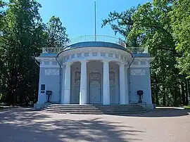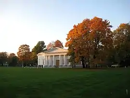 Yelagin Island (Russian: Елагин остров) is a park island at the mouth of the Neva River which is part of St. Petersburg, Russia. Yelagin Island is home to the Yelagin Palace but has a few other buildings as well. A former suburban estate of 18 century Russian nobles and later of a dowager Empress Maria, widow of Paul I of Russia, it has been serving since after the revolutions of 1917 as a city public park, officially Central Park of Culture and Rest named after Sergey Kirov, the famous Bolshevik city leader of early 1930s who supervised development of the city.