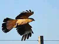 The yellow-headed caracara (Milvago chimachima) is a bird of prey in the family Falconidae, the falcons and caracaras.[4] It is found in Nicaragua, Costa Rica, Panama, every mainland South American country except Chile, and on Aruba, Bonaire, Curaçao, and Trinidad and Tobago.[5][6][7]