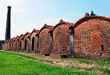 The kiln building is a rectangular shaped with a series of individual kilns. Each kiln can fire its own product and operate separately with exhaust holes connecting to each other with a unified exhaust pipe at the end. The kiln has a brick domed roof and a brick floor. The kiln features a 37-meter tall chimney.[3]