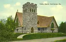 Development here began in the 1870s and virtually ended in the 1920s, leaving York Harbor a microcosm of period resort architecture, now converted for year-round use. The Marshall House was sold in 1957 and demolished in 1972, to be replaced with condominiums and the Stage Neck Inn (designed by Sasaki, Dawson, DeMay Associates). However, the York community retains a wealth of Second Empire, Shingle Style, Mission Revival and Colonial Revival architecture.[6] Of particular note are the Lancaster Building designed by E. B. Blaisdell and built in 1895, Trinity Episcopal Church designed by H. J. Hardenbergh and built in 1908, and the York Harbor Reading Room designed by James Purdon and built in 1910. The Cliff Walk, an ancient shoreline path lined with beach roses, winds along Eastern Point ledges above the surf.