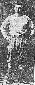 The opening contest of the 1917 season was against Jim Thorpe and his Canton Bulldogs. The game, which took place at Canton's Wright Field, drew a crowd of 7,000 fans. As Frolund notes, player-manager Thorpe, "who very seldom played a full game, played every minute of this one."[2] He adds that the Bulldogs won a narrow victory in a contest where "the lineups read like a who's-who of post-graduate football, circa 1917."[2] As sports historian Keith McClellan writes: "Although the Canton Bulldogs gained 168 yards with their rushing attack and passed for an additional 82 yards, they could not cross Youngstown's goal for a touchdown. The Youngstown defense was outstanding whenever Canton threatened to score. Howard 'Cub' Buck's drop kick from the 15-yard line in the first period produced the only points of the game. Three times, Bart Macomber tried to tie the score with a field goal but failed each attempt. Canton won 3–0."[5] McClellan adds that the game was characterized by "head-to-head competition" between the teams' two centers, Robert Peck (Youngstown) and Ralph "Fats" Waldsmith.[1] According to McClellan, legendary Notre Dame coach Knute Rockne listed Peck "as the best center for the first quarter of this century."[6]