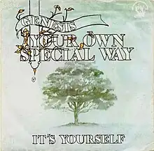 "Your Own Special Way" is a song by the English progressive rock band Genesis. The song was written by the band's bassist and guitarist Mike Rutherford. Released (in edited form) as the first and only single from their eighth studio album Wind & Wuthering, it became the band's first song to chart on the Billboard Hot 100, peaking at number 62.[3] The laid-back nature of the song stood in stark contrast to much of the band's earlier material and foreshadowed many of the band's later hits, such as the following album's "Follow You Follow Me".