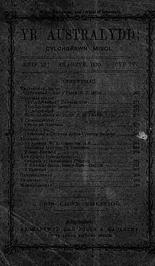 - ↑ (search for) Yr Australydd The Argus, 4 April 1871, at Trove