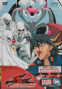 Jack and Crow arrive at the complex only to find themselves locked out, so they sneak in via a ventilation shaft. As Yusei continues to struggle against the Guard Robot, Primo completes their program's installation into the Ghosts, although one of the other emperors of Yliaster, Jakob (the leader), is curious and suspicious of his actions. With his objective complete, Primo starts a self-destruct countdown and leaves using his power, giving Yusei just 10 minutes to win his duel and escape. Jack and Crow join up with Bruno who, reluctantly, have to escape ahead of Yusei. As time is about to run out, Yusei manages to use his monster's abilities to block off the Guard Robot's Lock Deck and summon Stardust Dragon to win the duel. As the complex explodes, Lazar uses his tricks to save Yusei and warns him not to delve any further into the matter. | |||||