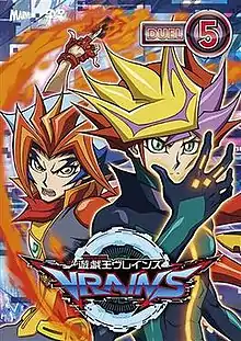 Yu-Gi-Oh! VRAINS is the fifth main spin-off anime series in the Yu-Gi-Oh! franchise and the ninth anime series overall. It is produced by Gallop and broadcast by TV Tokyo. The series is directed by Masahiro Hosoda. The series follows Yusaku Fujiki. It takes place in a high school environment in Den City.[1] The series features Charisma Duelists who use VR and are similar to YouTubers. The show's theme is "Let's take one step forward and try it!"[2] This season uses five theme songs. From episodes 47–102, the first opening theme is "Go Forward" by Kimeru.[3] From episodes 47–70, the first ending theme is "BOY" by uchuu. From episodes 71–95, the second ending theme is "Glory" (グローリー, Gurōrī) by Band-Maid. From episodes 96–103, the third ending theme is "Are You Ready?" (Are you ready?, Ā Yū Redi?) by Bis. From episode 103, the opening theme is "Calling" (コーリング, Kōringu) by Kimeru.