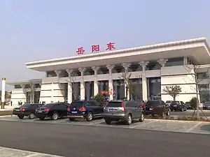 Yueyang East railway station (Chinese: 岳阳东站) is a railway station located in Yueyanglou District, Yueyang, Hunan Province, China. It is on the Wuhan–Guangzhou high-speed railway, a segment of the Beijing–Guangzhou high-speed railway. The station opened in 2009. It is also the last station in Hunan before the train crosses the border to Hubei Province at Chibi North railway station.