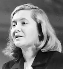 Yulia Vladimirovna Drunina (Russian: Ю́лия Влади́мировна Дру́нина, IPA: [ˈjʉlʲɪjə vlɐˈdʲimʲɪrəvnə ˈdrunʲɪnə] ; May 10, 1924 ⓘ– November 20, 1991)[1] was a Soviet poet who wrote in the Russian language. She was a nurse and a combat medic during World War II and known for writing lyrics and poetry about women at war. Her works are characterized by moral clarity, sincere intonation and based on her real life experience, including participation in the war as a source of inspiration for her writings.