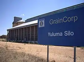Yuluma is a rural community in the central part of the Riverina and a railway station on The Rock–Oaklands Railway line. The station is situated about 616 rail kilometres from Sydney. It is situated by road, about 7 kilometres (4.3 mi) south west of Boree Creek and 29 kilometres (18 mi) north east of Urana. The railway station was in operation between 1911 and 1975.[1]