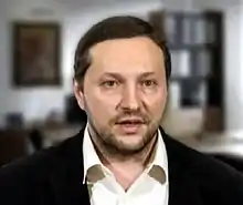 Yuriy Yaroslavovych Stets (Ukrainian: Юрій Ярославович Стець; born 29 December 1975) is a Ukrainian journalist and politician.[2] He was appointed to the post of Minister of Information Policy at the formation of the Second Yatsenyuk Government on 2 December 2014.[3] He resigned one year later because he felt he had "met all the targets".[4] He withdrew his letter of resignation on 4 February 2016, and continued in the post.[5] On 31 May 2017 Stets wrote a letter of resignation for health reasons and went on sick leave the same day.[6] Eventually Stets stayed on as Minister until on 29 August 2019 the Honcharuk Government was installed.[1] This government abolished the whole Ministry of Information Policy altogether.[1]