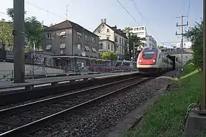 ![]() SBB InterCity train emerging from the Wipkingen tunnel into Wipkingen station | |||||||||||