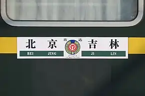 The Z117/118 Beijing-Jilin Through Train (Chinese: Z117/118次北京到吉林直达特快列车) is Chinese railway running between the capital Beijing to Jilin City express passenger trains by the Shenyang Railway Bureau,[1] Jilin passenger segment responsible for passenger transport task, JIlin originating on the Beijing train. 25T Type Passenger trains running along the Jingha Railway and Changtu Railway across Jilin, Liaoning, Hebei, Tianjin, Beijing and other provinces and cities, the entire 1131 km. Beijing railway station to Jilin railway station running 14 hours and 9 minutes, use trips for Z117; Jilin railway station to Beijing railway station to run 12 hours and 17 minutes, use trips for Z118.