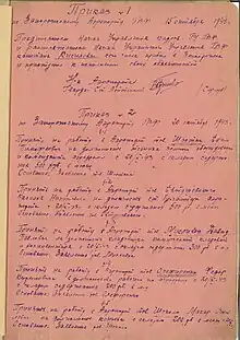 - the date of the airport's establishment is 15 October 1943. Immediately after the release of Zaporizhzhia from the Nazi troops, an order No. 1 was issued for the enterprise according to which the first head of the Zaporizhzhia airport was appointed. At that time, the airport infrastructure was located on the eastern outskirts of the city;[3]