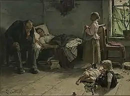 In 1891, he received a gold medal for his painting The Sick Mother at a major exhibition in Berlin. Two years later, he won a medal at the World's Columbian Exposition.