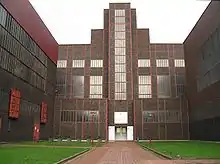 The Zollverein Coal Mine Industrial Complex (German Zeche Zollverein) is a large former industrial site in the city of Essen, North Rhine-Westphalia, Germany. The first coal mine on the premises was founded in 1847, and mining activities took place from 1851 until December 23, 1986. For decades, starting in the late 1950s, the two parts of the site, Zollverein Coal Mine and Zollverein Coking Plant (erected 1957–1961, closed on June 30, 1993), ranked among the largest of their kinds in Europe. Shaft 12, built in the New Objectivity style, was opened in 1932 and is considered an architectural and technical masterpiece, earning it a reputation as the "most beautiful coal mine in the world".[1]