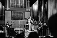 Since 1965 Alla Pugacheva begins her concert activity. In 1965 she went on the first tour in her life, it was a concert trip with mosestrada in the program "Bang-Bang, or Satirical shots at misses", and in 1967 as part of the propaganda team of the radio station "Yunost" on a tour of the Arctic And Tyumen. After graduating from the music school, she became a soloist of the Rosconcert and a concertmaster at the State School of Circus and Variety Art (GUTSEI), and than stood soloist of the VIA Novy electron at the Lipetsk regional Philharmonic. During the following years, Pugacheva worked in VIA Moskvichi in the Moscow regional Philharmonic in a jazz orchestra conducted by Oleg Lundstrom. In 1974 for her performance of the songs "Posidim, pookayem" and "Ermolova s Chistykh prudov", she was awarded the third prize at the Fifth all-Union competition of pop artists. In 1974-1976 she was a soloist of VIA Vesyolye Rebyata. In 1975 at the Golden Orpheus festival Pugacheva was awarded the Grand Prix for her performance of the song "Arlekino". This victory made her popular in the USSR and abroad. Later that year she released her first solo EP. After leaving the Vesyolye Rebyata in 1976, Pugacheva was briefly a soloist of the State variety orchestra of Armenia under the baton of Konstantin Orbelian. In 1977, having started a solo career, she was accompanied by VIA Rhythm from the Kharkov regional Philharmonic. In 1978, at the competition "Intervision Song Contest" in Sopot (Poland), the singer was awarded the Grand Prix for the performance of the song "Vsyo mogut koroli". Songs performed by her at that time were very often heard on radio and broadcast on television, but there was no solo album until 1978.