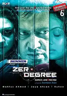 Zero Degree is a 2015 Bangladeshi psychological thriller film written and directed by Animesh Aich, starring Mahfuz Ahmed, Joya Ahsan, and Dilruba Yasmeen Ruhee in lead roles.[1][2] The film focuses on a love triangle that later turns fatal and revengeful. The film's first look was launched on 5 November 2014 and a trailer was released on 15 January 2015. The film is produced by Mahfuz Ahmed under the banner Playhouse Production. The film released on 6 February 2015.[3][4]